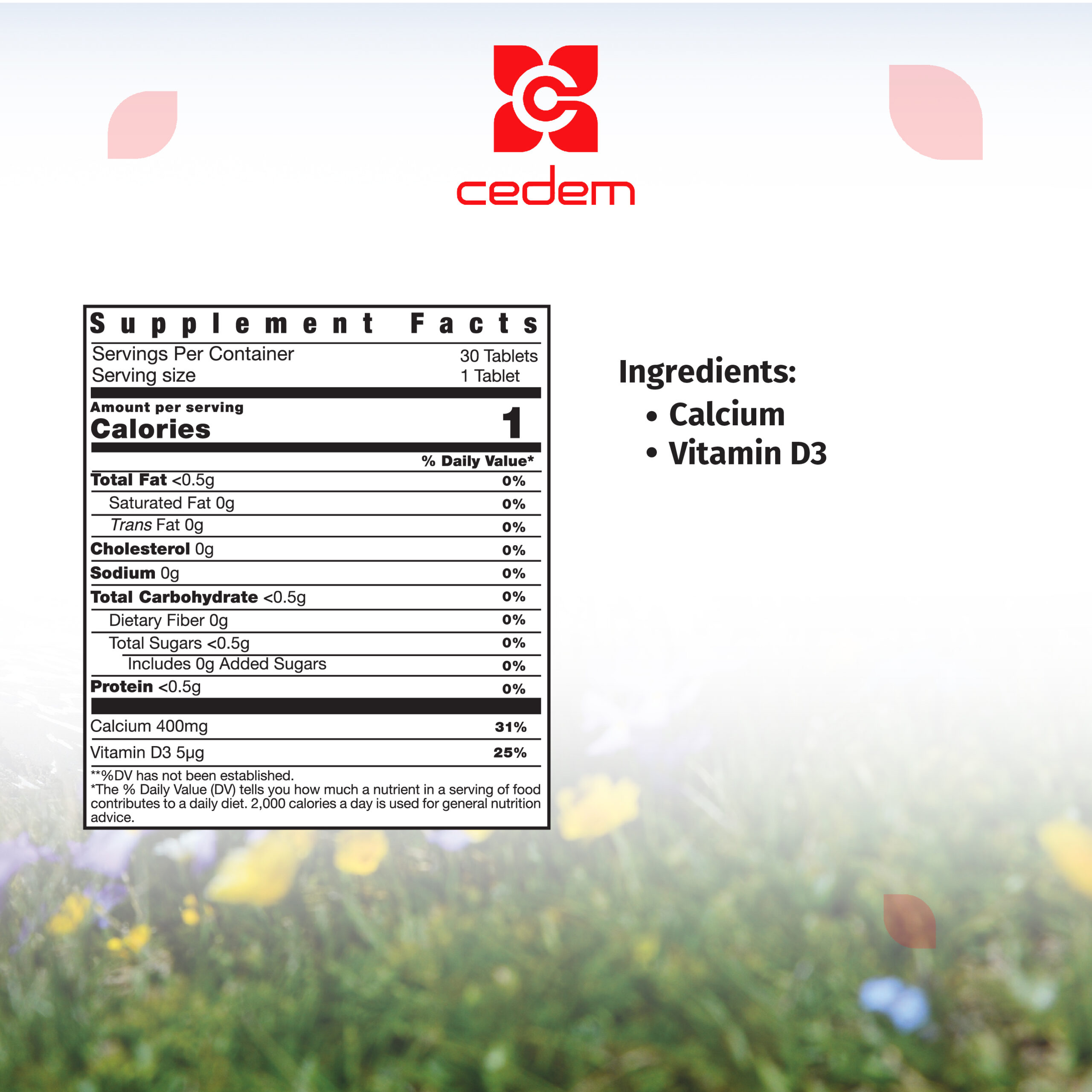 Calcium (400 mg), Vitamin D3 (5 μg).