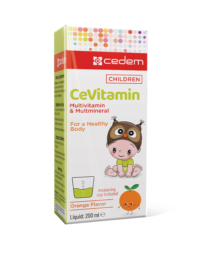 CeVitamin is an immune-boosting multivitamin for children that enhances activity, mood, and overall body strength. This supplement provides essential vitamins to support daily health, especially during high-demand periods like cold seasons or stress.