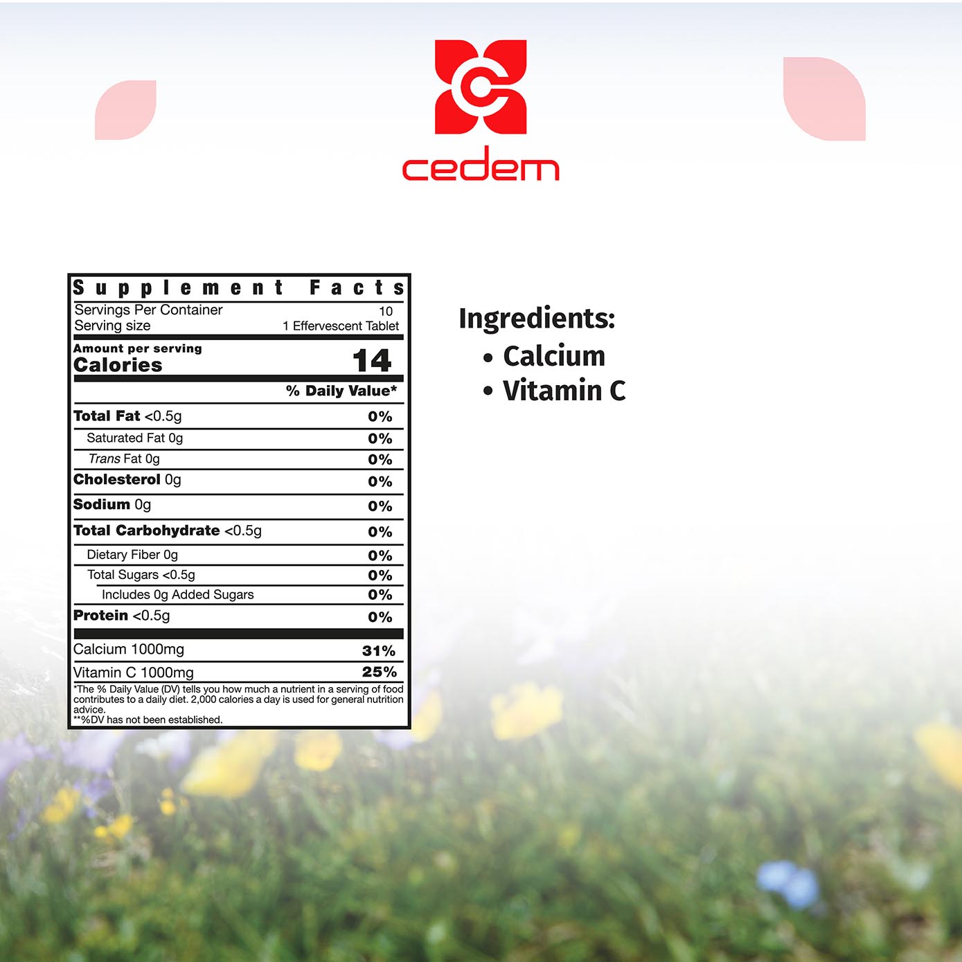Each effervescent tablet provides 1,000 mg of Calcium and 1,000 mg of Vitamin C, meeting your daily nutritional needs.